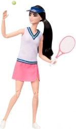 Panenka Barbie Kariéra Tenistka má celkem 22 kloubů, což umožňuje dětem stát se součástí jejich divokých sportovních fantazií. Obléká sportovní obleček skládající se z bílého topu s modrými akcenty a růžové sukně, doplněný tenisovou čepicí.