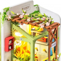 Vstupte do poetického světa miniatur a vytvořte si vlastní květinářství s lavičkou, poštovní schránkou a pestrobarevnými květinami. Model vyniká realistickými doplňky, dřevěnou konstrukcí a příjemným LED nasvícením, které po dokončení promění každé zákoutí domova v okouzlující dekoraci.