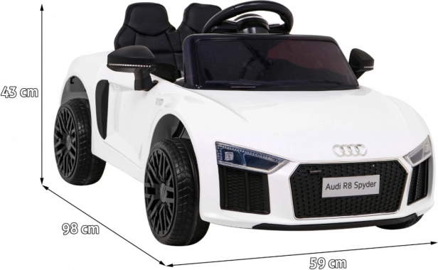 Sportovní jízda pro malé řidiče v ikonickém stylu AUDI R8 Spyder. Autíčko je poháněno dvěma motory 35 W a napájeno dvojicí baterií 6 V/4,5 Ah, takže zvládne hladkou jízdu po pevném povrchu i zahradních chodnících. Plynulý rozjezd (Soft Start) chrání dítě před trhnutím a odpružení přední i zadní nápravy zvyšuje komfort.