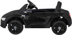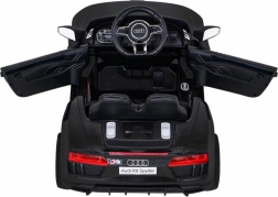 Malý řidič, velká radost. Elektrické autíčko AUDI R8 Spyder v elegantní černé barvě nabízí atraktivní vzhled skutečného sportovního vozu, jednoduché ovládání a bezpečný provoz. Díky dvěma motorům 35 W a plynulému rozjezdu je jízda komfortní a stabilní, zatímco přední i zadní odpružení tlumí nerovnosti.