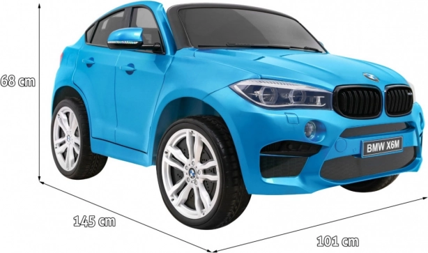 Licencované dětské vozítko BMW X6M XXL v lakované modré barvě je ideální pro sourozence či kamarády. Díky dvěma výkonným motorům a baterii 12 V / 10 Ah zvládá plynulý rozjezd, dvě rychlosti a jízdu vpřed i vzad. Rodiče mají vše pod kontrolou díky dálkovému ovladači 2,4 GHz s funkcí nouzového zastavení.