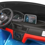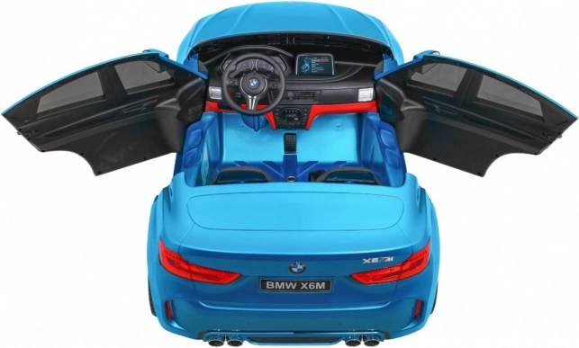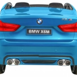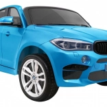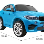 Stylové elektrické autíčko BMW X6M XXL pro dvě děti nabízí silné motory 2× 12 V / 120 W, lakovaný modrý povrch, dálkové ovládání 2,4 GHz se zastavením Stop a komfortní sedadlo z černé eko kůže s dvojitými bezpečnostními pásy. Velká EV A kola 32 × 12 cm, LED světla vpředu i vzadu a audio panel s MP3/USB/SD/AUX se postarají o bezpečnou a zábavnou jízdu.