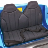 Široké sedadlo z černé eko kůže s dvojitými bezpečnostními pásy poskytuje pohodlí a stabilitu dvěma malým řidičům.