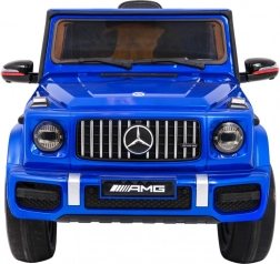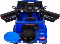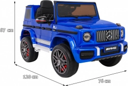 Luxusní dětské elektrické autíčko MERCEDES-AMG G63 v lakované modré barvě potěší realistickým vzhledem, dvěma motory 2×35 W, baterií 12 V/7 Ah a dálkovým ovladačem 2,4G se zastavením. Nabízí měkká EVA kola, sedadlo z eko kůže s pásy, LED světla a bohatou multimediální výbavu (MP3/USB/SD/AUX, zvuky ve volantu).