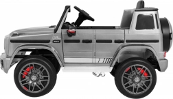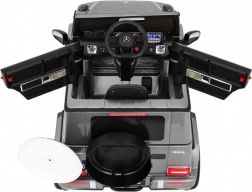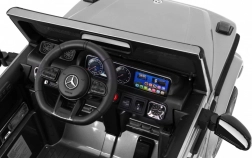 Dva výkonné motory a baterie 12 V / 7 Ah zajišťují plynulou a zábavnou jízdu. Přední LED světla a autentické detaily modelu G63 podtrhují luxusní vzhled.