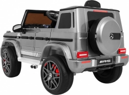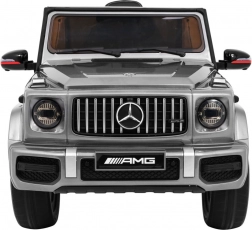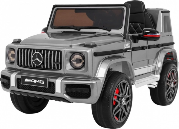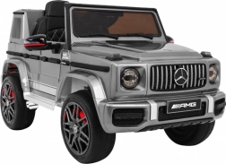 Stylové dětské autíčko Mercedes‑AMG G63 se stříbrným lakem nabízí realistický zážitek z jízdy díky 2× 35 W motorům, baterii 12 V / 7 Ah, plynulému rozjezdu, EVA kolům a dálkovému ovladači 2,4 GHz se stop funkcí. Potěší LED světla, audio panel MP3/USB/SD/AUX, ekokůže sedadlo s pásy a otevírací dveře.