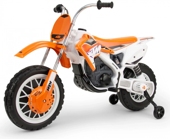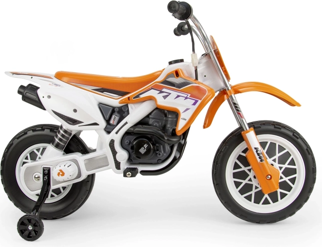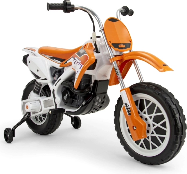 Dětská elektrická motorka Cross KTM SX 12V je součástí licenční řady KTM, která nadchne každého malého fanouška motorismu. Tento model krosové motorky se může pochlubit plastovými koly s gumovým protiskluzovým páskem pro perfektní přilnavost a přídavnými podpůrnými kolečky pro udržení rovnováhy.