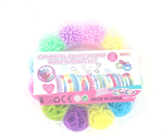 Kreativní sada pro malé i velké tvůrce: 900 ks barevných gumiček v krabičce ve tvaru květiny, doplněné o ruční stav, háček a spojky. Vytvářejte originální gumičkové náramky, přívěsky a ozdoby, rozvíjejte zručnost a užijte si hodiny zábavy.