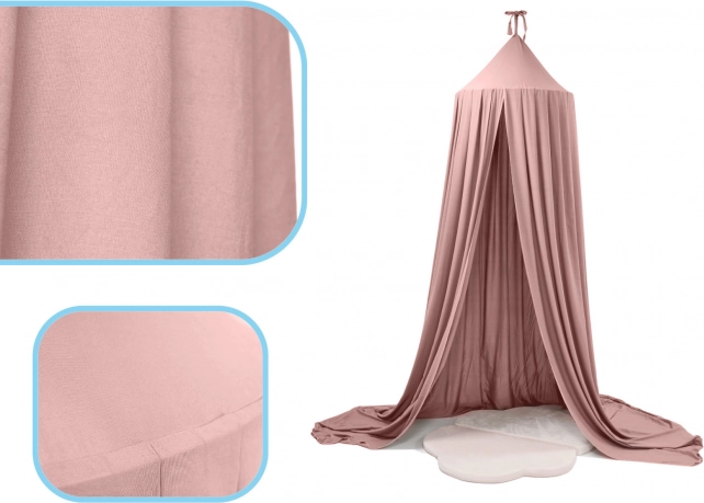 Růžový baldachýn promění každý dětský pokoj v pohádkové místo. Lehká, vzdušná látka jemně obepíná prostor nad postýlkou či hrací zónou a vytváří soukromí pro odpočinek, čtení i fantazijní hry. Neutrální růžový odstín se snadno kombinuje s většinou dekorů.