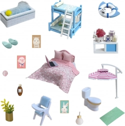 Teleskop, houpačka, skluzavka, balonky i další drobnosti dodají scéně život. Díky množství dekorací si domeček přizpůsobíte přesně podle své fantazie.