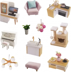 Součástí jsou miniaturní kousky nábytku a doplňků, které umožní detailní aranžování interiéru přesně podle vašich představ.