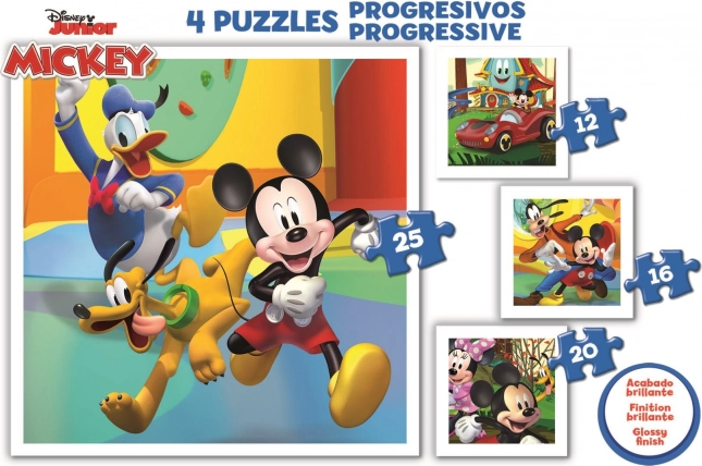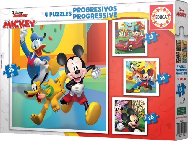 Toto Educa puzzle Mickey a přátelé obsahuje čtyři různé obrázky s variabilním počtem dílků, což umožňuje postupné zvyšování obtížnosti. Děti si mohou vybrat mezi 12, 16, 20 a 25 dílky, čímž se neustále zlepšují jejich skládací dovednosti.