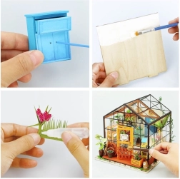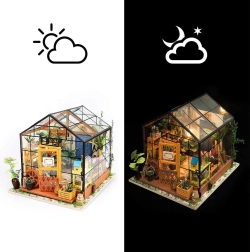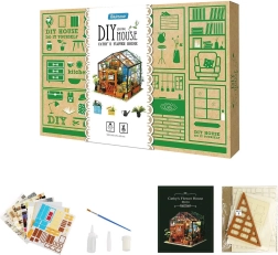 Miniaturní skleník od ROBOTIME je detailní výtvarná stavebnice, se kterou si užijete příjemné chvíle tvoření a vytvoříte si útulnou dekoraci s LED osvětlením. Balení obsahuje vše potřebné k sestavení – lepidlo, barvy, štětec a drobné nástroje. Model vyniká bohatými detaily, reálným vzhledem a relaxačním zážitkem ze stavby.