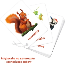 Obrázkové karty na provázku „Zvířata“ pomáhají dětem rozvíjet slovní zásobu, jemnou motoriku a koordinaci ruky a oka. Sada obsahuje návrhy na hry a aktivity, které podporují zlepšování paměti a pozornosti. Děti mohou napodobovat zvířecí zvuky a pohyby či hledat rozdíly a podobnosti mezi nimi. Odolný karton zajišťuje dlouhou životnost karet.