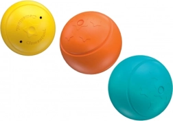 Tři míčky různých velikostí putují po barevných skluzavkách a končí za správnými dvířky – ideální pro trénink barev, třídění a logického uvažování.