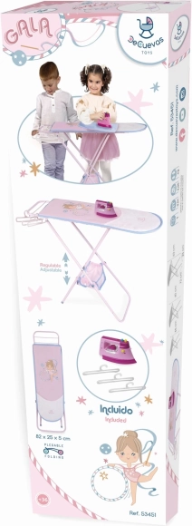 Skládací žehlicí prkno pro panenky z kolekce GALA přináší dětem autentický zážitek z péče o oblečky. Díky nastavitelné výšce 55 / 60 / 63 cm poroste s dítětem a zůstane pohodlné i po několika letech hraní. Růžovo‑bílý design s jemnými sportovními motivy a doplňující modrou barvou působí moderně a hravě.