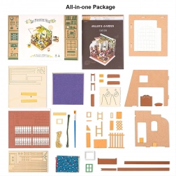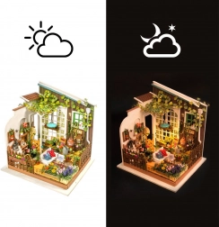 Tato propracovaná DIY miniatura promění váš volný čas v příjemný tvůrčí zážitek. Stavebnice obsahuje předřezané díly z překližky, papírové potisky, textilní a kovové prvky, barvy i lepidlo. Díky LED osvětlení vyniknou všechny detaily a hotový model se stane stylovou dekorací na poličku či do pracovny.