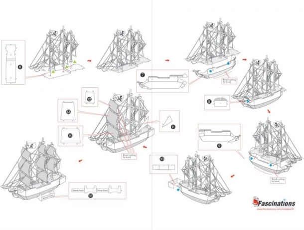 Laserově gravírované plachty, lanoví i trup vytvářejí působivý a věrný vzhled slavné lodi BLACK PEARL.