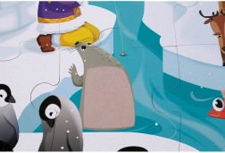 Vstupte s dětmi do fascinujícího světa za polárním kruhem. Toto hmatové puzzle kombinuje radost ze skládání s objevováním různých textur – některé dílky mají speciální povrchy, které podněcují hmat a pomáhají dětem poznávat polární zvířata nejen očima, ale i dotykem.