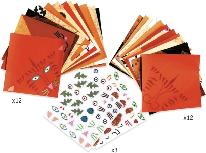Kreativní sada DJECO Origami zvířátka: 24 papírů, samolepky a obrázkový návod. Rozvíjí motoriku a kreativitu. Vhodné pro děti od 4 let.