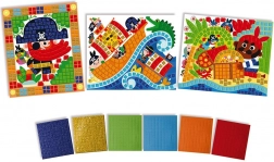 Objevte kouzlo tvoření s mozaikovou sadou s motivem pirátů. Děti doplňují barevné a třpytivé samolepky na vyznačená místa a krok za krokem skládají pestré obrázky s piráty, loděmi a poklady. Sada podporuje hmatový rozvoj, koordinaci oko–ruka i trpělivost.
