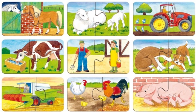 Objevte první skládání pro nejmenší: dětské puzzle RAVENSBURGER s motivy farmy nabízí 9 samostatných skládaček po 2 dílcích. Extra silný karton, přesné výřezy a robustní dílky podporují jemnou motoriku, sou-středění a poznávání zvířátek a strojů (traktor, kombajn). Kvalitní zpracování bez odlesků a šetrné k přírodě.