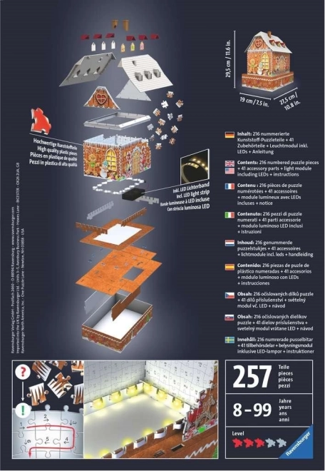Ponořte se do kouzelného světa Ravensburger 3D Puzzle a složte každou část, abyste objevili magickou Perníkovou chaloupku. Tento puzzle:
