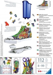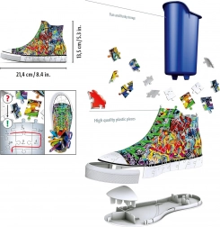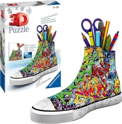 Objevte jedinečné spojení zábavy a funkčnosti. 3D puzzle teniska s graffiti designem se skládá ze speciálně tvarovaných a ohebných plastových dílků, které do sebe přesně zapadnou a vytvoří stabilní dekoraci bez lepidla. Po složení získáte originální organizér na tužky, pastelky či nůžky, který dodá vašemu stolu kreativní nádech.