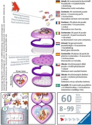 Objevte kouzlo 3D puzzle RAVENSBURGER: z přesně vyrobených, zakřivených a ohebných dílků sestavíte působivou šperkovnici ve tvaru srdce s něžným motivem koní. Konstrukce je stabilní, drží pevně bez lepidla a po sestavení slouží jako funkční a krásná dekorace do dětského pokoje.