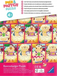 Užijte si nekonečnou zábavu s dětským puzzle RAVENSBURGER Mix & Match. V balení najdete tři obrázky po 24 dílcích, které lze skládat klasicky podle předlohy, nebo je mezi sebou libovolně kombinovat a tvořit legrační farmářské postavičky. Ideální pro rozvoj fantazie, jemné motoriky a trpělivosti dětí.