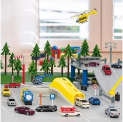 Chytrý design spodní strany obsahuje standardní konektor SIKU WORLD pro snadné propojení s dalšími díly systému. Příjezdová cesta je dimenzovaná pro vozidla 1:50; při potřebě větší průjezdné výšky lze sejmout střechu vjezdu a umožnit průjezd i větším modelům jako taxi či sanitka. V balení najdete také helikoptéru HELI TAXI v měřítku 1:87 pro okamžité hraní.