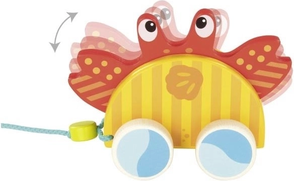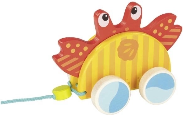 Tato barevná tahací hračka ve tvaru kraba je vyrobena z kvalitního masivního dřeva, což zajištuje její dlouhou životnost a bezpečnost pro děti. Kolečka hračky připomínají mořské vlnky, což z ní činí hravou a nepřehlédnutelnou součást dětského pokoje.