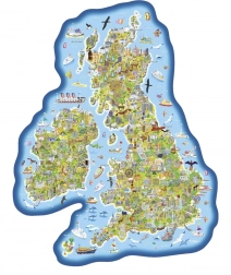 Obrysové puzzle Mapa Velké Británie a Irska nabízí bohatě ilustrovaný pohled na typická zvířata, pamětihodnosti a zajímavosti jednotlivých oblastí Britských ostrovů. Ideální pro podporu učení se a zlepšení zeměpisných znalostí.