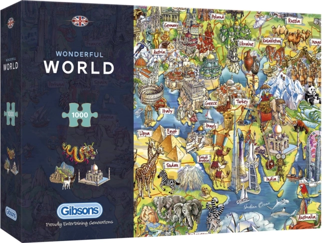 Užijte si zábavu s puzzle Gibsons Báječný svět, které má 1000 dílků a zachycuje motiv kreslených světadílů a států od Marie Rabinky. Složené puzzle má rozměry cca 68 x 49 cm.