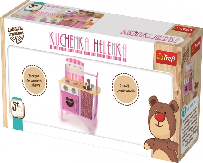Dětská kuchyňka Helenka TREFL je stylová dřevěná hračka, která přenese děti do světa vaření. Díky realistickým prvkům, jako je sporák s troubou, dřez a praktický úložný prostor, si děti procvičí jemnou motoriku i sociální dovednosti při hře na role.