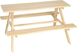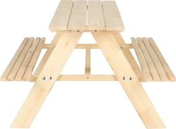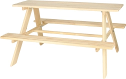Vytvořte dětem útulný koutek na zahradě. Set se skládá z pevného piknikového stolu a dvou integrovaných lavic, takže si děti mohou pohodlně vychutnat svačinu, tvořit nebo hrát deskové hry na čerstvém vzduchu. Hladce broušené dřevo je příjemné na dotek a připravené k finální povrchové úpravě.