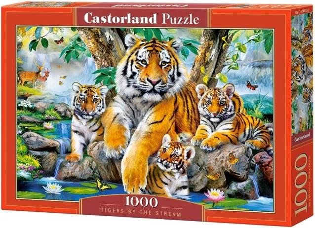Ukládání puzzlí je kreativní zábava, která rozvíjí pozornost, učí vytrvalosti a trénuje koncentraci. Tato skládačka s 1000 dílky zobrazuje Tygři u potoka a nabízí hodiny zábavy pro jednotlivce nebo skupinu.