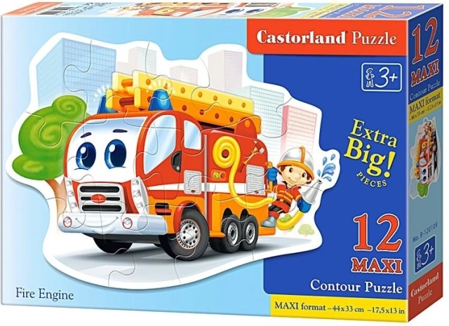 Barevné dětské puzzle s motivem hasičského auta pro nejmenší. 12 velkých dílků se snadno drží a skládají, po složení vznikne obrázek 47 × 33 cm. Podporuje koncentraci, trpělivost a rozvoj fantazie – skvělý dárek pro malé objevitele.