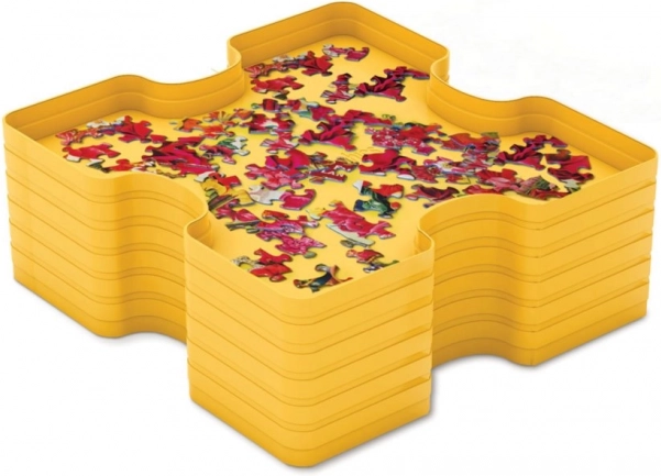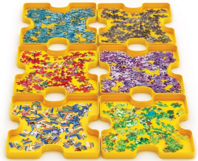 Praktický třídič na puzzle od značky EUROGRAPHICS pro pohodlné a přehledné skládání. Obsahuje 6 plastových misek ve tvaru dílků o rozměru 20 × 20 cm, které umožňují třídění podle barev a tvarů. Misky lze stohovat a snadno uložit zpět do krabice, takže šetří místo a zabraňují ztrátě dílků. Kapacita až 1000 dílků.