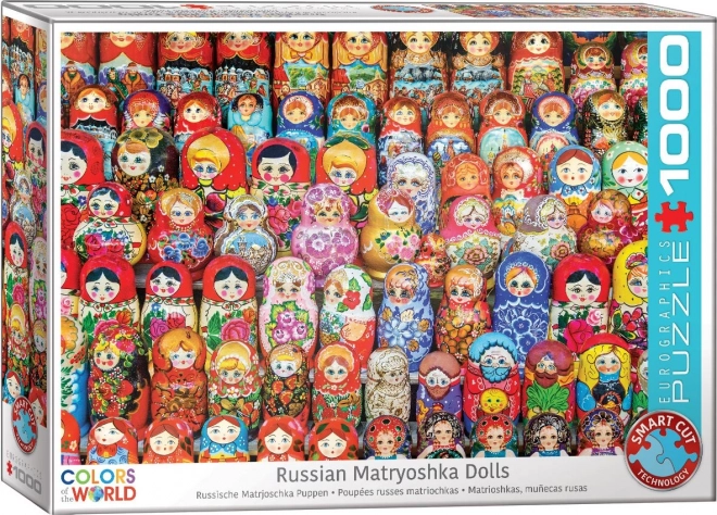 Objevte nový svět skládání s puzzle EUROGRAPHICS Ruské Matriošky, které vás zaujme svou komplexností a neobvyklými tvary dílků. Tento model jde mimo standardní mřížku, což znamená, že rohy a hrany nejsou vždy v jedné ose. To přináší větší výzvu než klasická puzzle.