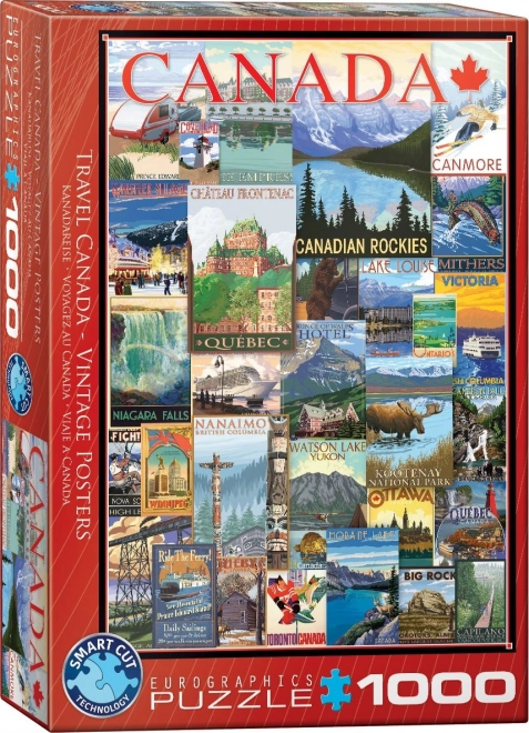 Ponořte se do atmosféry plakátů z cest napříč Kanadou a užijte si skládání, které je zábavné i podnětné. Speciální raznice značky EUROGRAPHICS nekopíruje klasickou mřížku, díky čemuž jsou rohy a hrany dílků v různých osách a tvary netradiční. To zvyšuje náročnost a zároveň přináší uspokojivý pocit z dokončení.