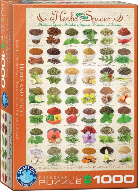 Objevte stylové puzzle s motivem bylinek a koření od značky EUROGRAPHICS. Skládání 1000 dílků s nepravidelnou raznicí nabídne vyšší obtížnost a skvělou zábavu pro pokročilé skládače. Puzzle obsahuje anglické popisky a na zadní straně krabičky najdete recept v angličtině. Rozměr po složení je cca 48,89 × 67,63 cm.