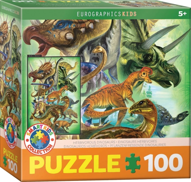 Zábavné dětské puzzle EUROGRAPHICS s motivem býložravých dinosaurů přináší chytrou zábavu pro malé milovníky pravěku. Obsahuje 100 dílků, je vhodné od 5 let, po složení má rozměr 33 × 48,3 cm a uložené je v kompaktní čtvercové krabičce.