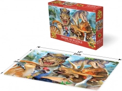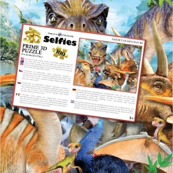 Zábavné 3D puzzle s motivem dinosauří selfie potěší malé i velké fanoušky pravěku. Díky 3D optickému efektu působí obrázek plasticky a prostorově, takže některé prvky vypadají blíže a jiné vzdálenější. Skládačka obsahuje 100 dílků a po sestavení má rozměr cca 31 × 23 cm.