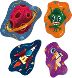 Každý puzzle se pyšní jedinečným designem včetně raketoplánu, mimozemšťana, planety a astronauta, což podporuje dětskou fantazii a poznávání vesmíru.