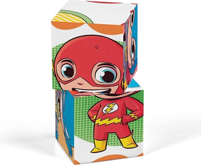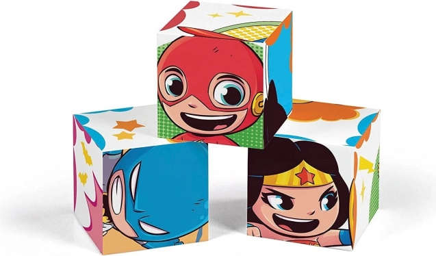 Každá strana kostky ukrývá část barevné ilustrace oblíbených DC superhrdinů. Z 6 kostek složíte 6 různých motivů, které děti motivují ke hře i vyprávění příběhů.