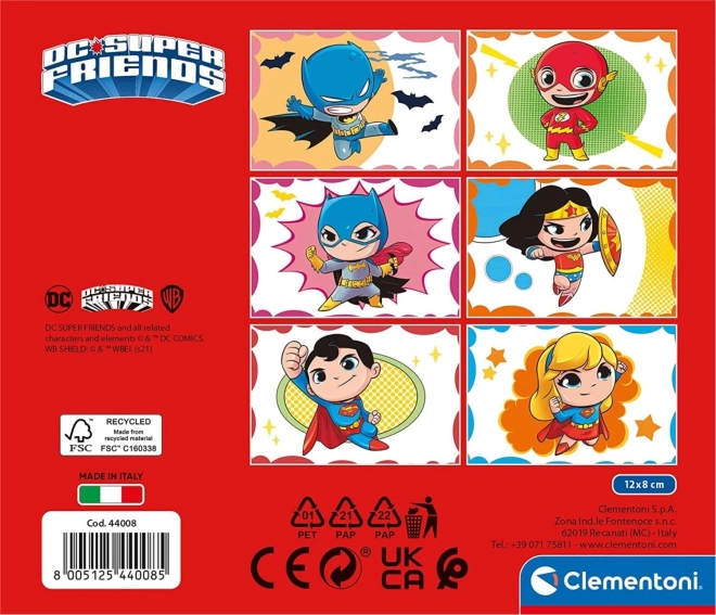 Objevte kreativní svět skládání s kostkami CLEMENTONI Play for Future – DC Super Friends. Šest pevných, lehkých a bezpečných kostek dětem umožní skládat pestré obrázky oblíbených superhrdinů, stavět věže a zkoumat, jak věci fungují. Hra podporuje koordinaci oko–ruka, trénuje trpělivost a přirozeně rozvíjí logiku a představivost.