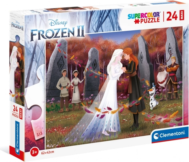 Udělejte radost malým fanouškům pohádky Ledové království 2. Toto MAXI puzzle s 24 dílky je navrženo pro pohodlné skládání dětskými ručičkami a nabízí nádherný obrázek oblíbených postaviček. Díky větším dílkům je skladné, bezpečné a ideální pro první větší puzzle.