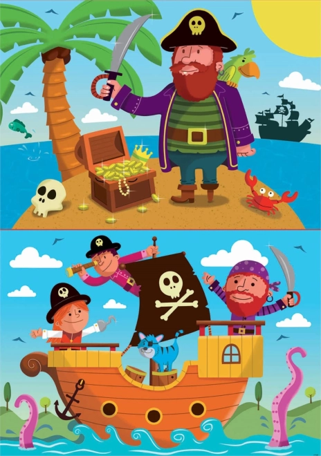 Užijte si zábavu s pirátským motivem díky puzzle od firmy Educa. Skládání puzzle pomáhá rozvíjet dětskou představivost a motorické dovednosti. Tento set obsahuje dva obrázky, každý o rozměrech 28 x 20 cm, které dohromady tvoří nádherný pirátský svět.