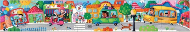 Panoramatické dětské puzzle s motivem městské dopravy kombinuje skládání a vyprávění příběhů. Nabízí krásné barevné ilustrace, snadné skládání pro nejmenší a ohromující délku téměř 1 metr. Díky chytře navrženým dílkům navíc podporuje první počítání i rozvoj slovní zásoby.
